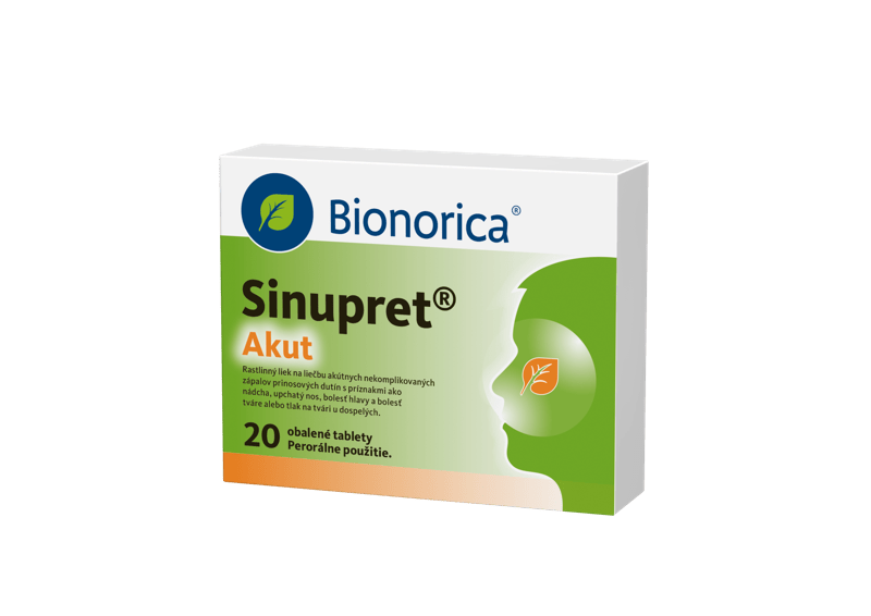 4 Sinupret® Akut obalené tablety. Písomná informácia pre používateľa (príbalový leták). Štátny ústav pre kontrolu liečiv (ŠÚKL). Dostupné na: [https://www.sukl.sk/hlavna-stranka/slovenska-verzia/pomocne-stranky/detail-lieku?page_id=386&lie_id=3999B]. Citované: 01. 01. 2026.